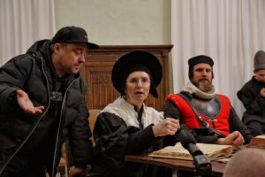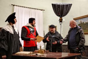 Mittlerweile sind die 5 Filme für die Burg Posterstein abgedreht. Ja – es war sehr anstrengend. 4 Tage intensives, konzentriertes Arbeiten. Immer wieder langes Warten auf Kameraeinstellungen und Regiebesprechungen. Aber es hat auch Spaß gemacht. Am 12. Mai ist auf der Burg die Einweihung der Ausstellung „Schlag um Schlag – Die Burg als Gerichtsort“ mit u.a. unseren Filmen. Hier ein paar Eindrücke vom Dreh.
